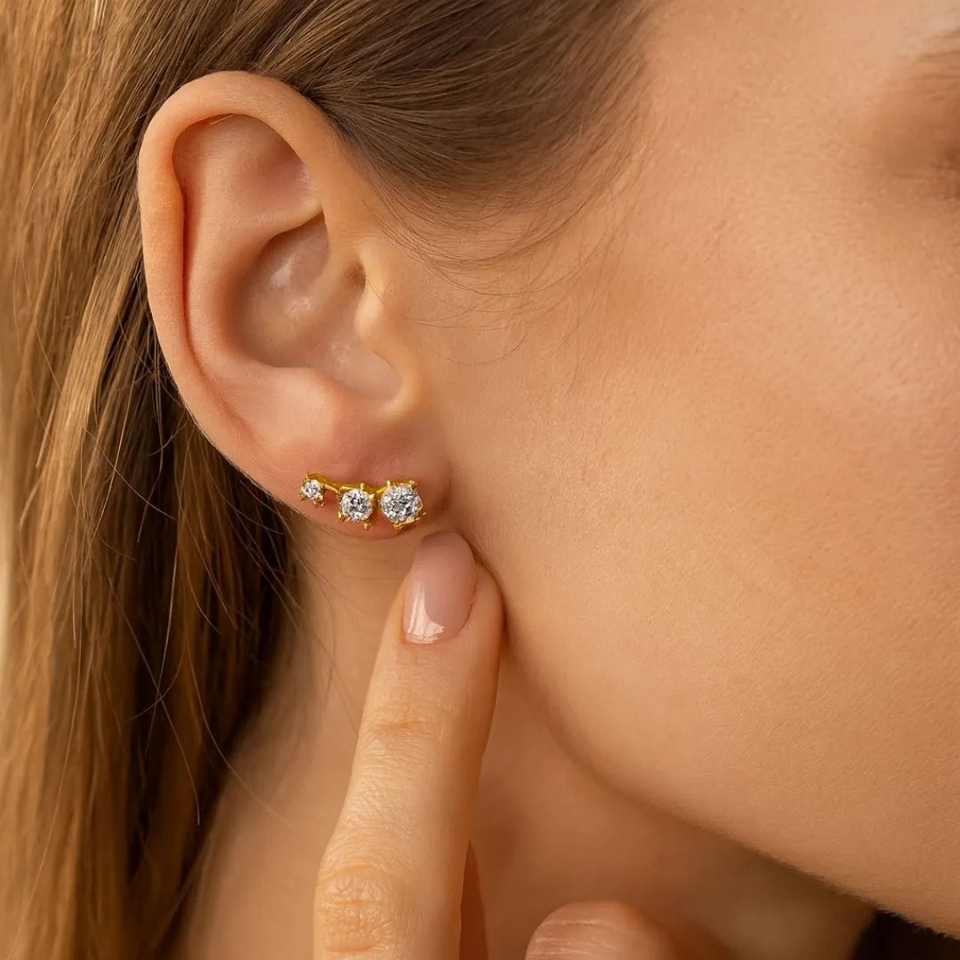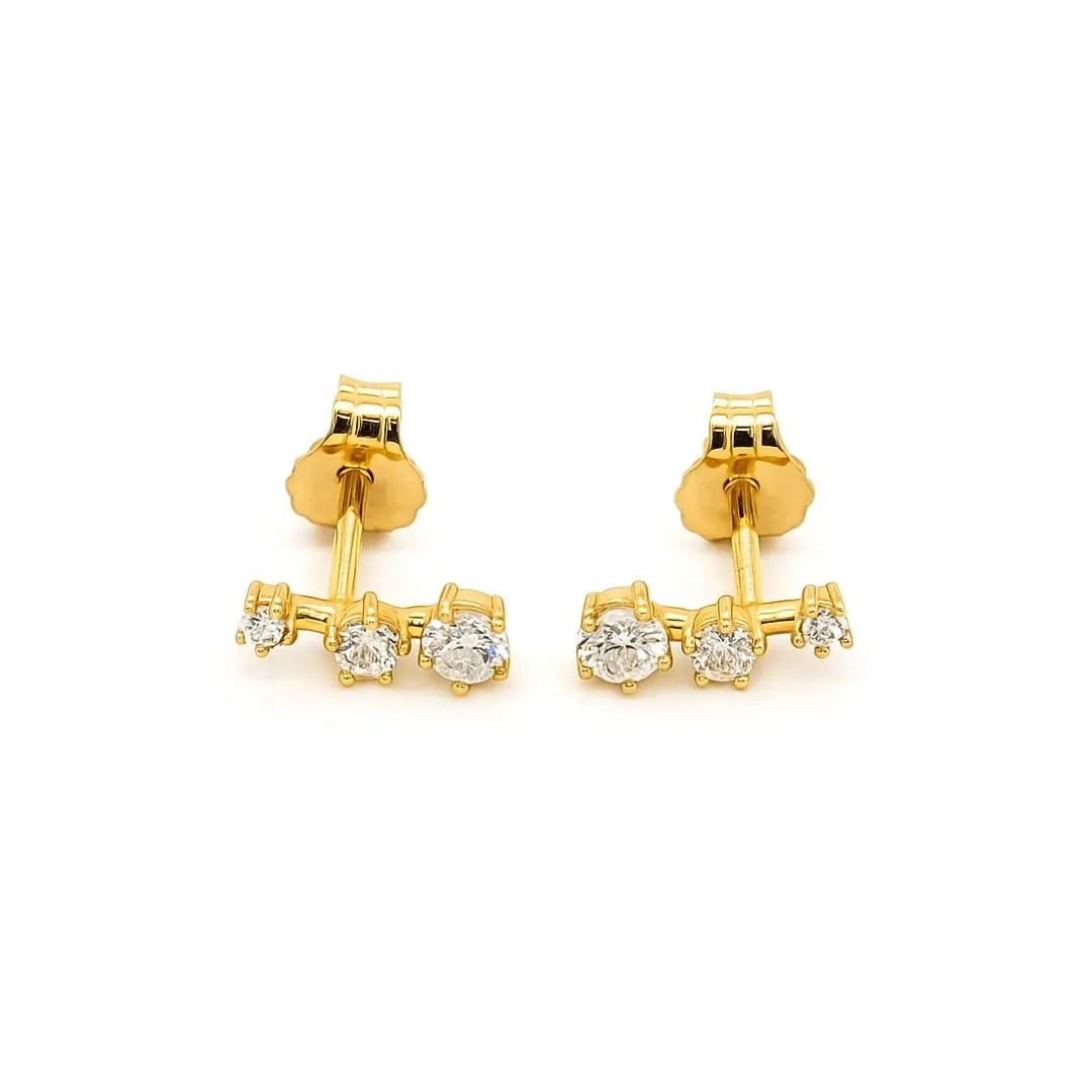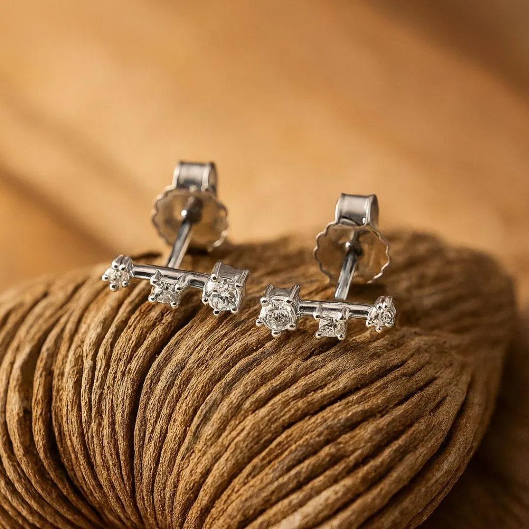 Grace in motion. The Letizia Earrings feature a graduated arrangement of three diamonds, flowing from bold to delicate for a subtle upward shimmer. Simple yet meaningful, their design symbolizes growth, grace, and strength, making them the perfect everyday pair that combines elegance with a touch of sparkle.