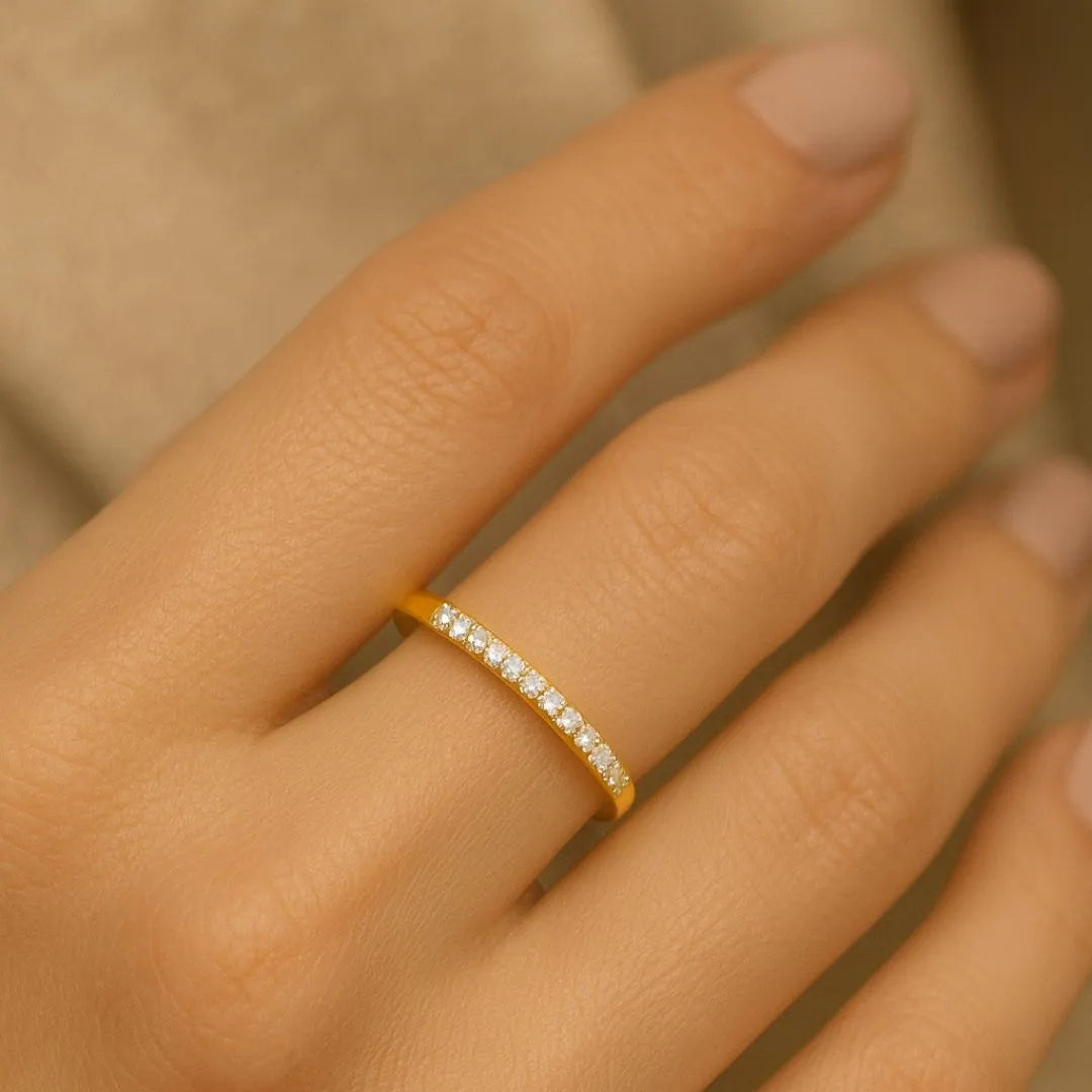 The Renata Ring is designed for bold self-expression in its simplest form. Crafted as a single, refined band, it features a graceful row of shimmering lab-grown diamonds that adds effortless sparkle to everyday moments. Versatile, playful, and modern, Renata moves seamlessly from workdays to weekends. Beautiful on its own or stacked with other Renata rings, this piece is perfect for those who love the layered look while keeping their jewellery thoughtfully simple.
