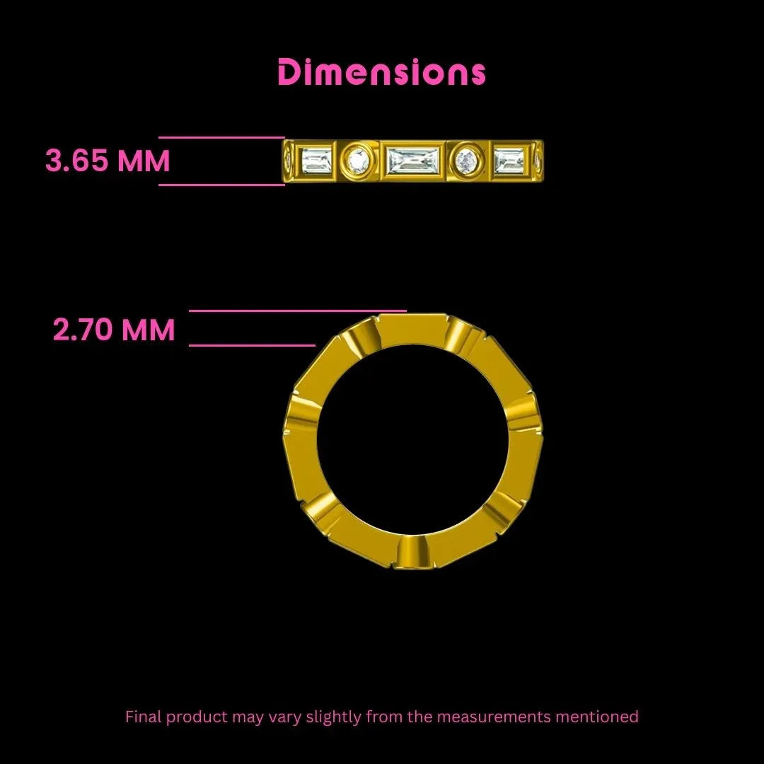 Tiziana speaks through quiet power rather than volume. Designed for those who say everything without saying it all, this understated piece creates a rhythm of balance and clarity through alternating baguette and round lab-grown diamonds. Each cut tells its own story, sharp precision, soft brilliance, and the calm assurance found in the moments in between. Worn alone or stacked, Tiziana is a timeless reminder that true elegance often lives in the unspoken, in the details we never had to say.