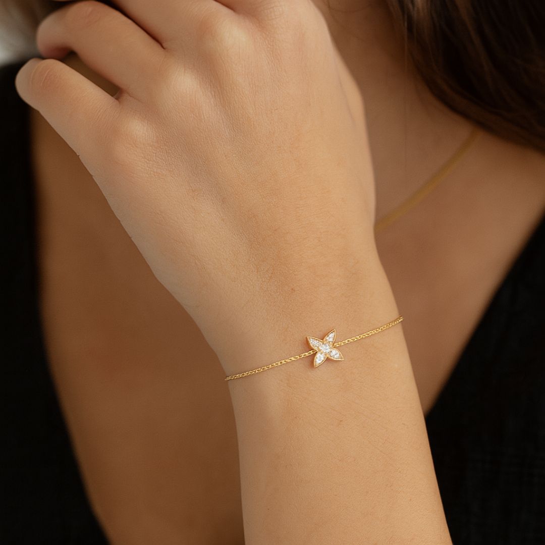 A little sparkle. A little wonder. A whole lot of grace. The Stella Bracelet features a delicate celestial-inspired charm, adorned with lab-grown diamonds for a subtle, twinkling finish. Lightweight and perfect for daily wear, it brings a quiet elegance to every outfit. Wear it solo for understated charm or layer it to let your style shine.