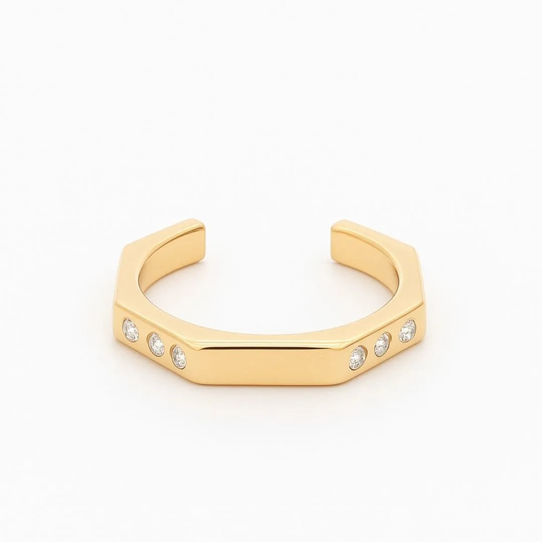 Where strength meets individuality, the Alessia Ring makes a powerful statement. Its bold open-ended silhouette is balanced by clean, architectural lines, while lab-grown diamonds symbolize resilience, growth, and forward motion. The intentional open edge reflects a deeper truth, not the pursuit of perfection, but the courage to evolve and remain authentic. Modern, versatile, and designed with a unisex sensibility, Alessia is a striking expression of balance, self-discovery, and personal freedom.