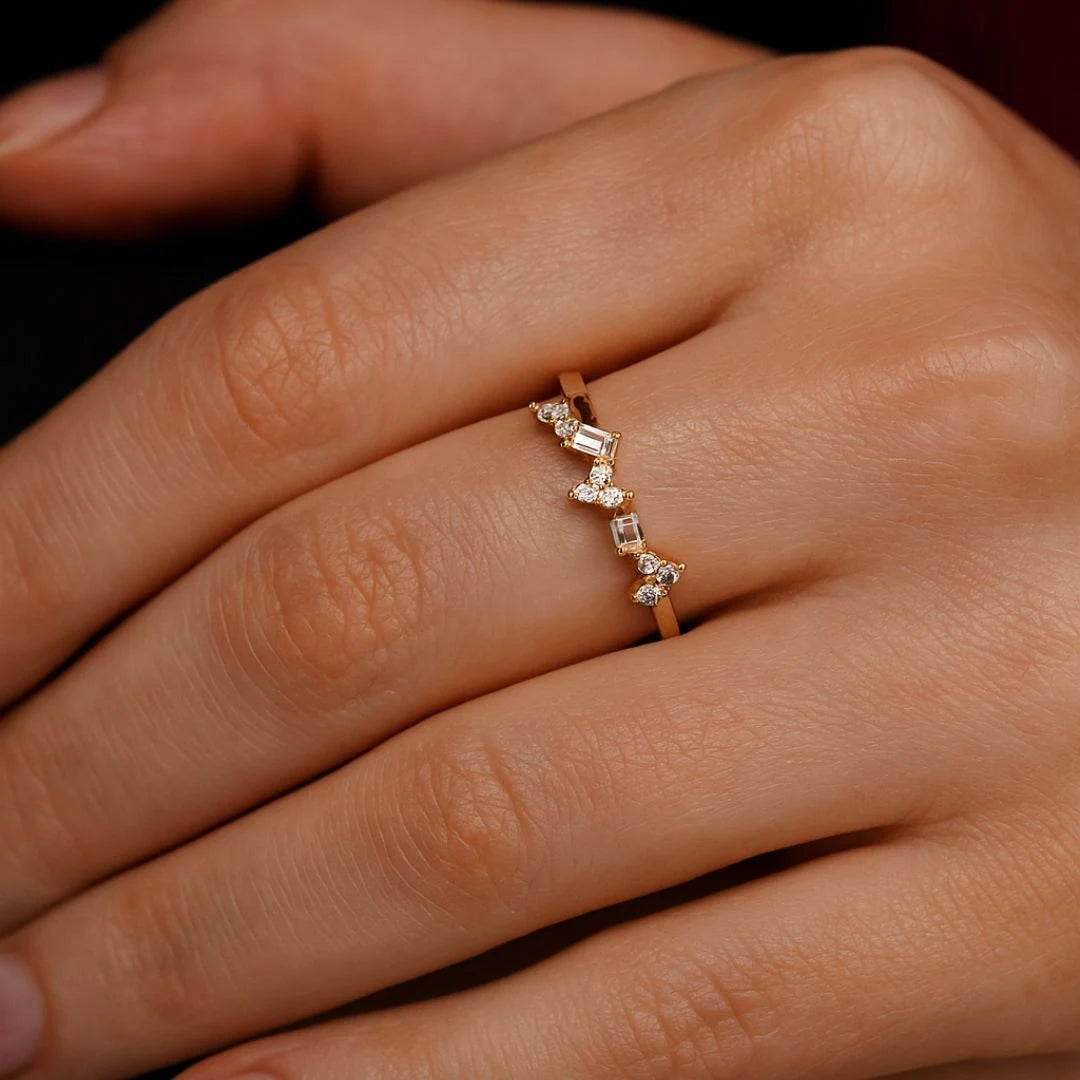 Like a gentle wave at your fingertips, the Ondina Ring captures fluid elegance in its graceful design. Its delicate, wave-inspired form is accented with shimmering lab-grown diamonds that sparkle like sunlight on water. Lightweight and versatile, Ondina brings subtle movement and effortless sophistication to every moment, making it a timeless addition to any modern wardrobe.